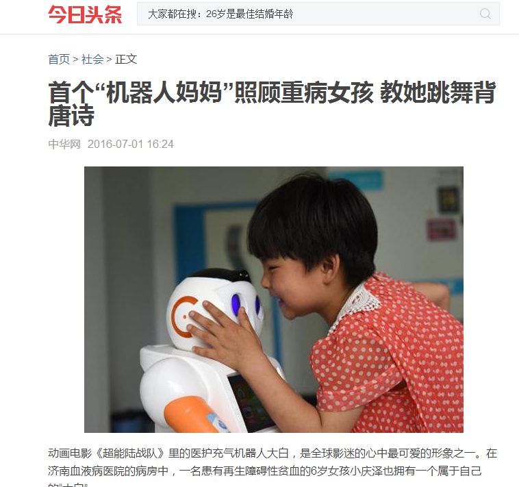 【全媒报道】机器人当“妈妈” 陪伴6岁患病女童