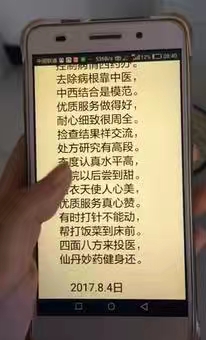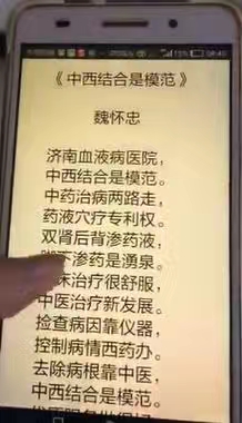 众所周知,血液病是一种较难治疗的疾病,治疗难度大,被人们称为“血癌”。有些患者多方治疗仍无法康复,是我院找到了合适的治疗方式;有些患者几度想要放弃治疗,是我院的治疗效果给了他们治疗下去的希望;有些患者频临死亡,是我院的治疗让他们在这个世界上多看了一天又一天。感谢的话语我们的医生护士听了很多,锦旗、感谢信挂满了医院的墙壁,而今天这位患者却用另一种特殊的方式——赋诗来感谢我院的特色治疗以及优质服务。