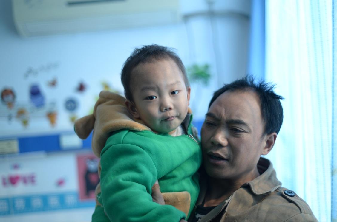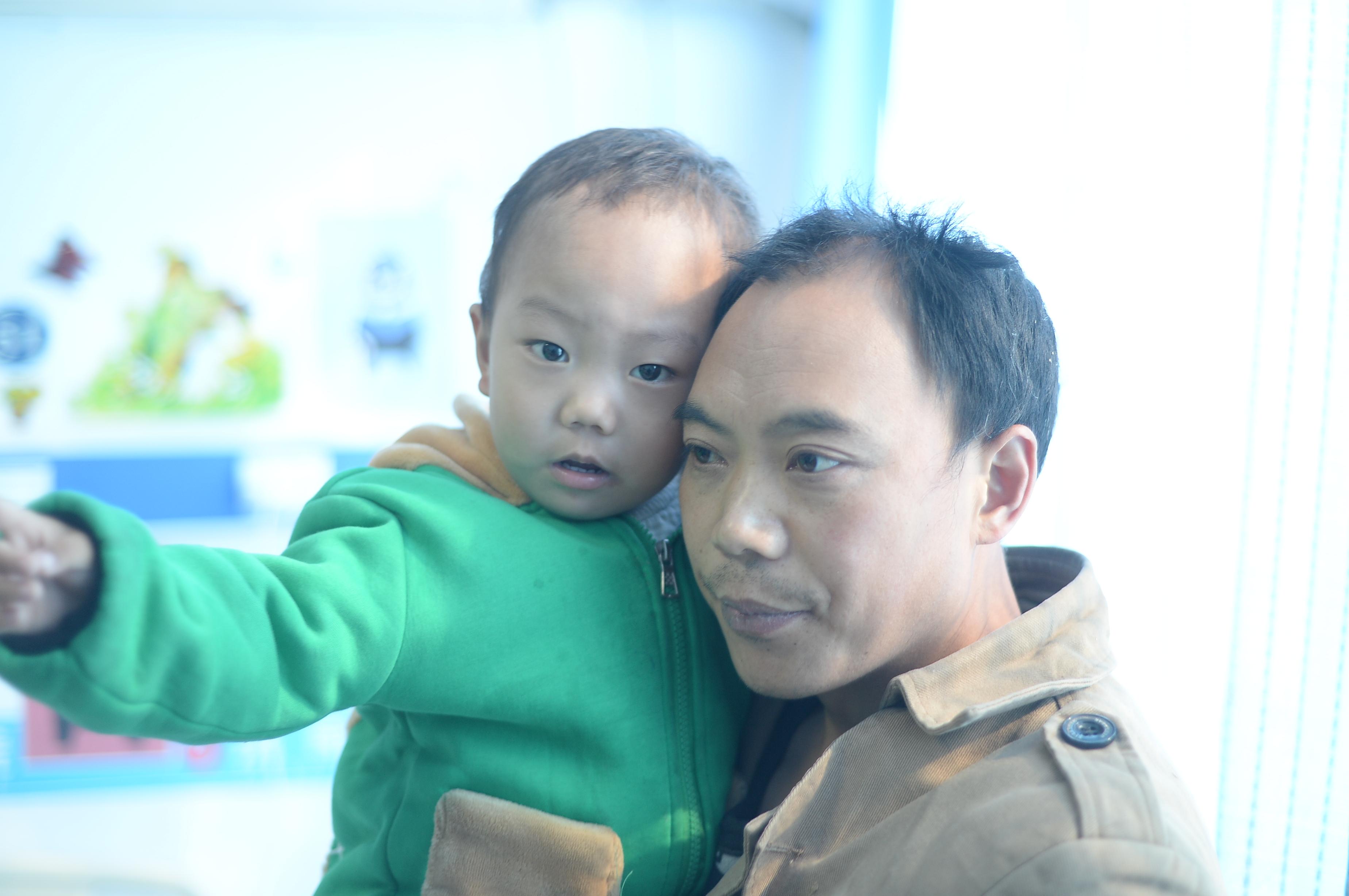 今年刚刚三岁的曹项虎和父亲曹立才一样,都带着四川大山农民的质朴,不善言辞,安静得坐在父亲身边,不哭不闹。